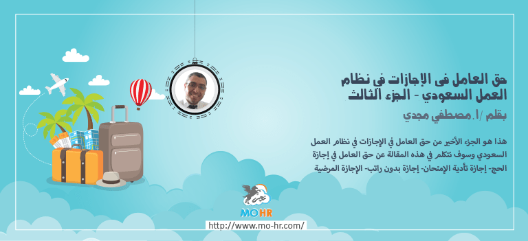 هذا هو الجزء الأخير من حق العامل في الإجازات في نظام العمل السعودي وسوف نتكلم في هذه المقالة عن حق العامل في إجازة الحج- إجازة تأدية الإمتحان- إجازة بدون راتب- الإجازة المرضية.